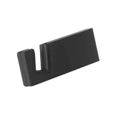 Suporte para celular em ABS e TPR. Fechado: 89 x 30 x 9 mm